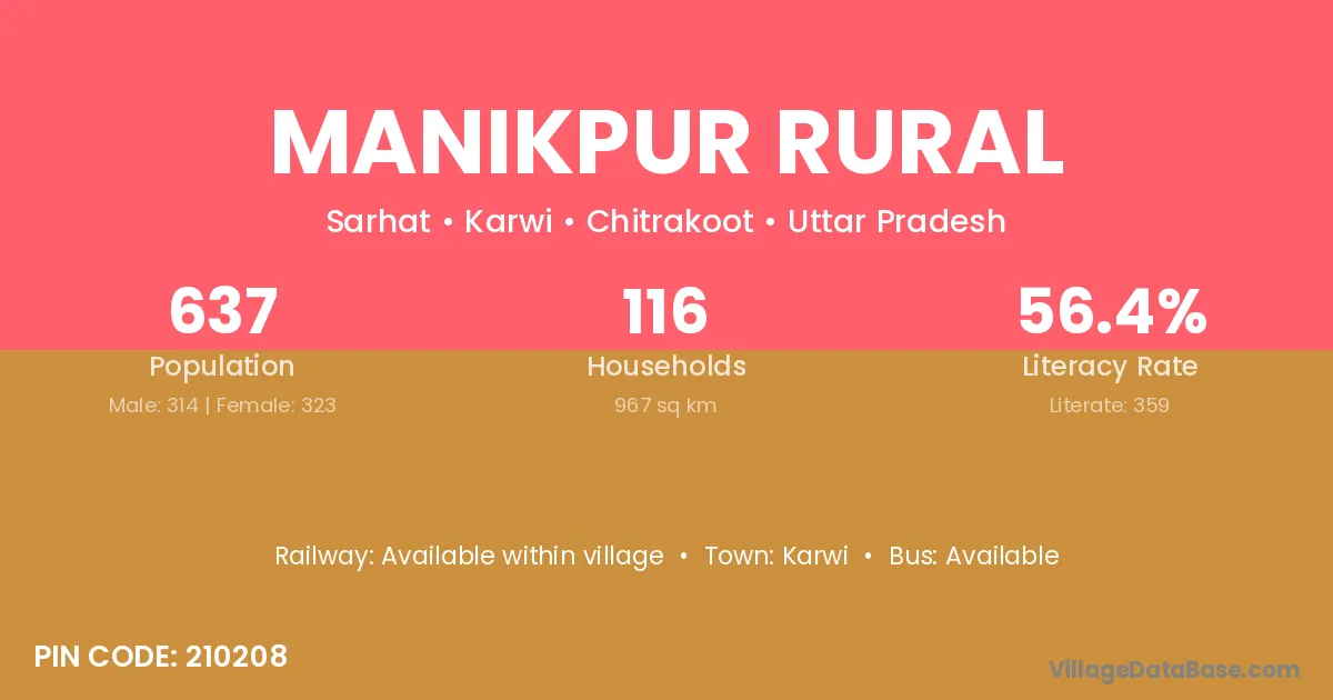 Manikpur Rural village has a total population of 637 people, of which 314 are males and 323 are females.