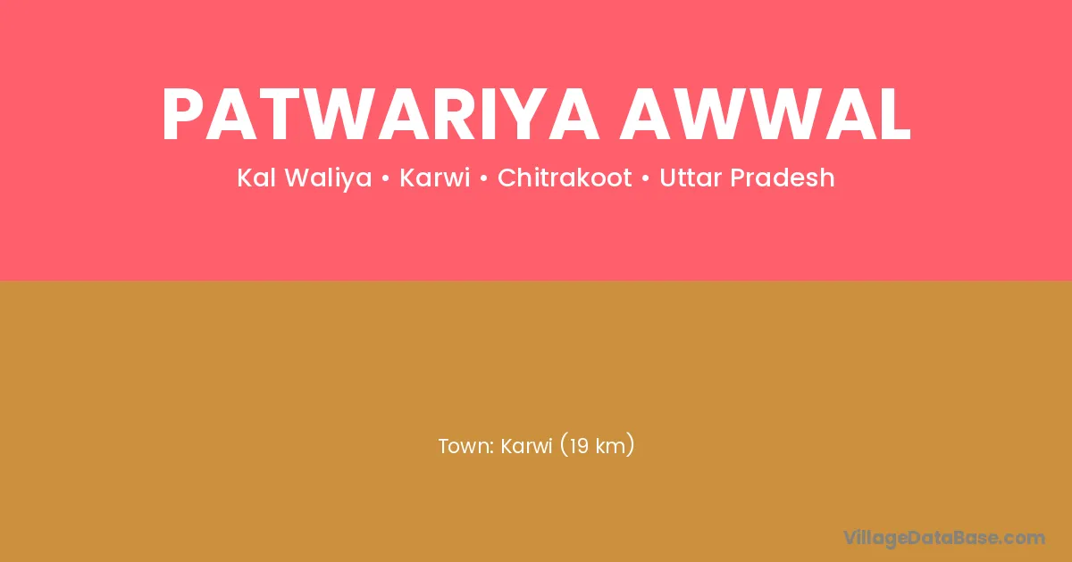 Karwi (19 km) is the nearest town to Patwariya Awwal village for major economic activities and is located approximately 19 km away.