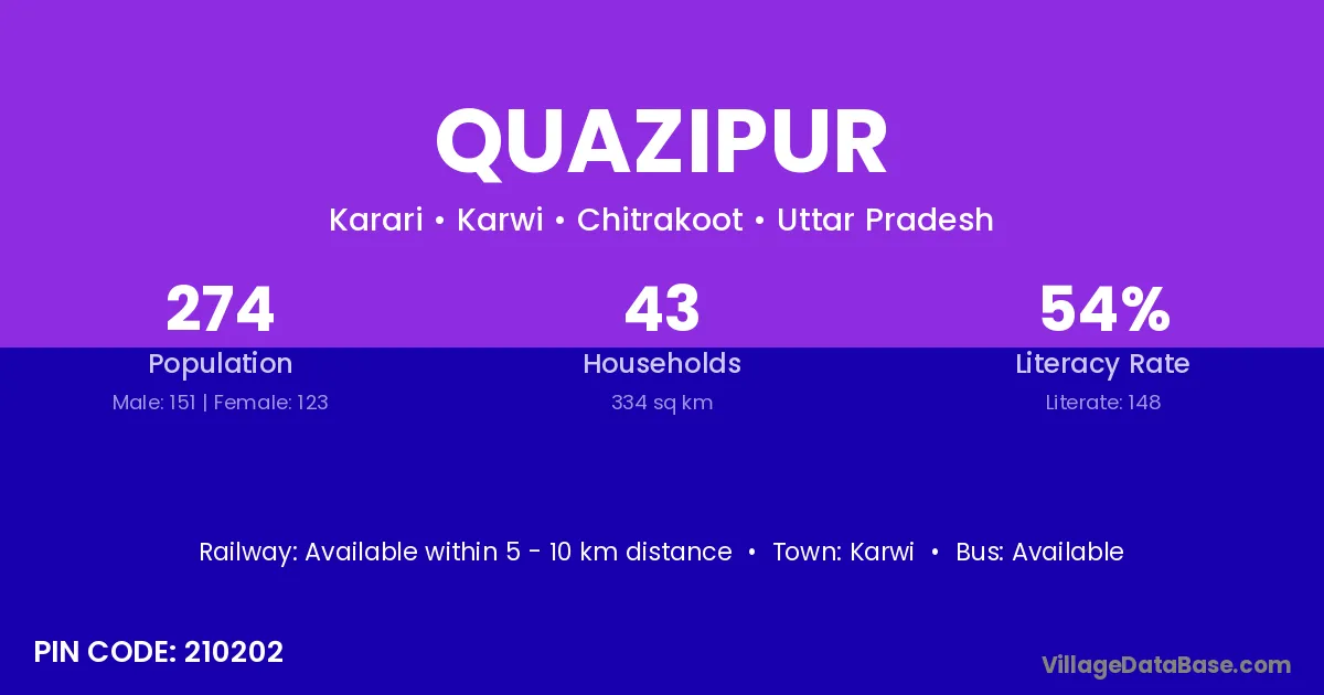 Quazipur village has a total population of 274 people, of which 151 are males and 123 are females.