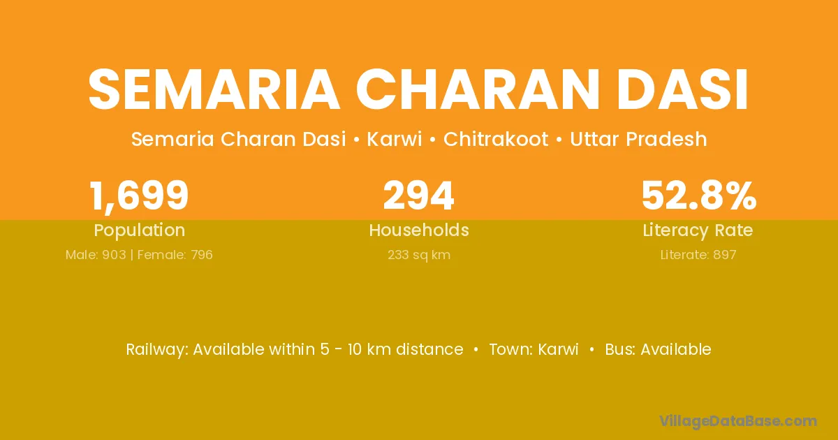 Karwi is the nearest town to Semaria Charan Dasi village for major economic activities