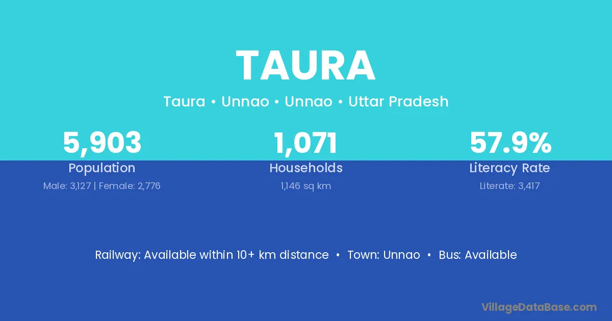 The literacy rate of Taura village is 58.12%. Male literacy stands at 69.19% and female literacy at 46.19%.
