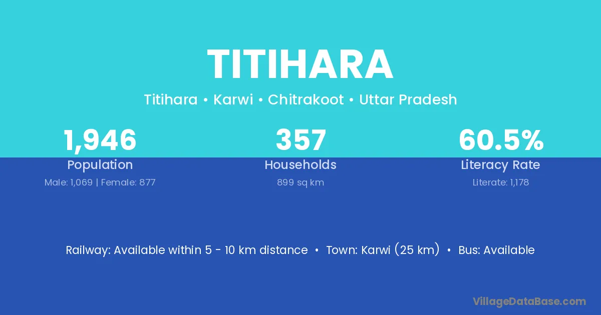 Karwi (25 km) is the nearest town to Titihara village for major economic activities and is located approximately 25 km away.