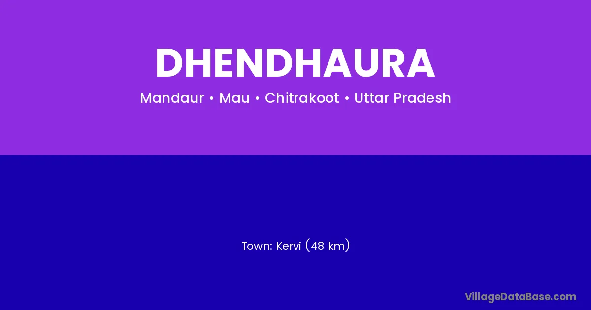 Kervi (48 km) is the nearest town to Dhendhaura village for major economic activities and is located approximately 48 km away.