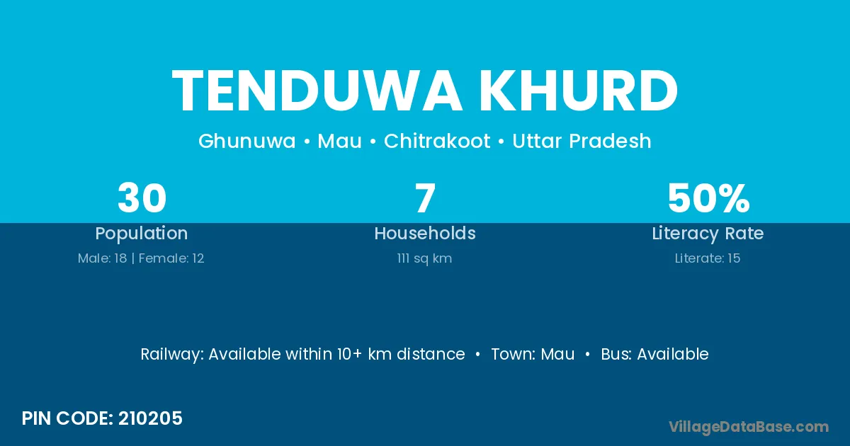 Tenduwa Khurd village has a total population of 30 people, of which 18 are males and 12 are females.