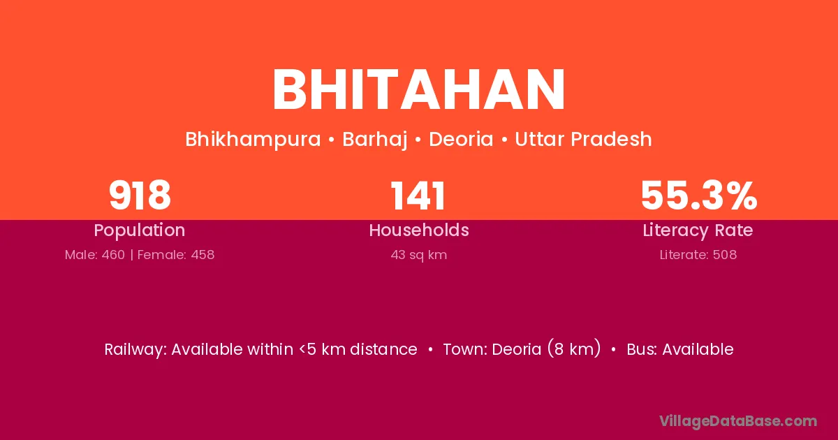Deoria (8 km) is the nearest town to Bhitahan village for major economic activities and is located approximately 8 km away.