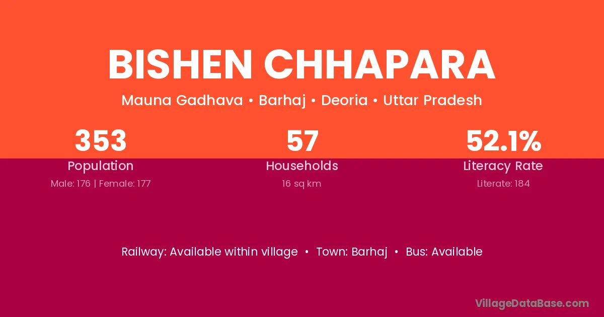 Bishen Chhapara village has a total population of 353 people, of which 176 are males and 177 are females.