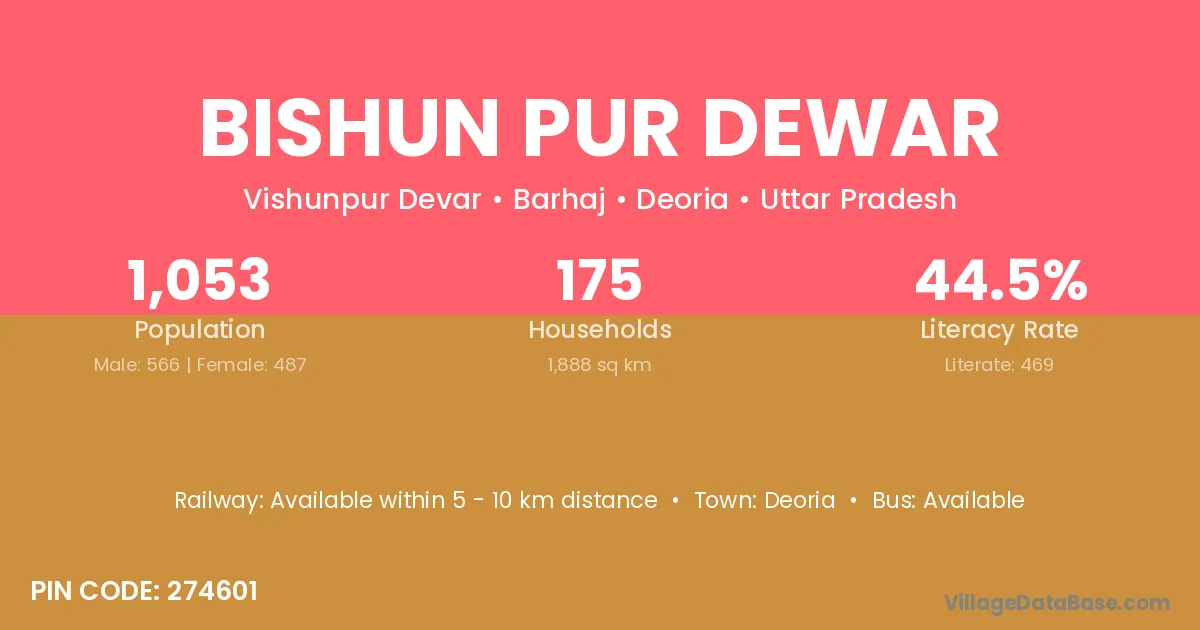 Deoria is the nearest town to Bishun Pur Dewar village for major economic activities
