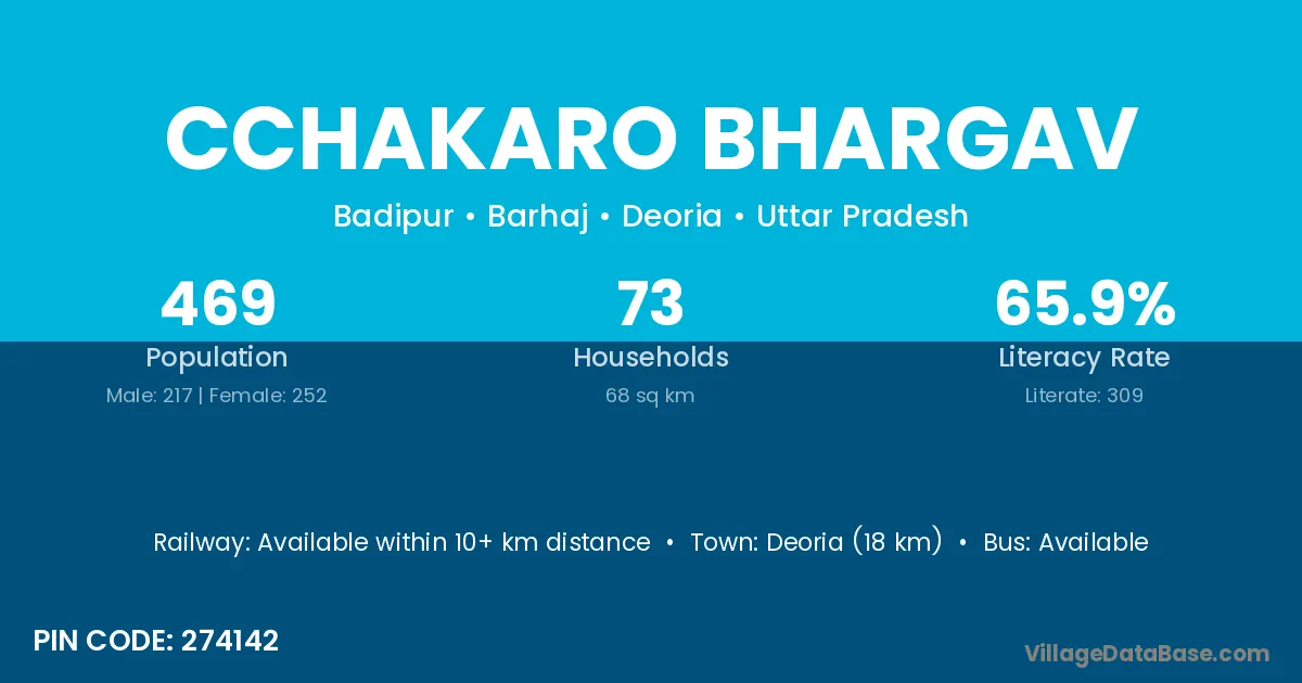 Cchakaro Bhargav village has a total population of 469 people, of which 217 are males and 252 are females.