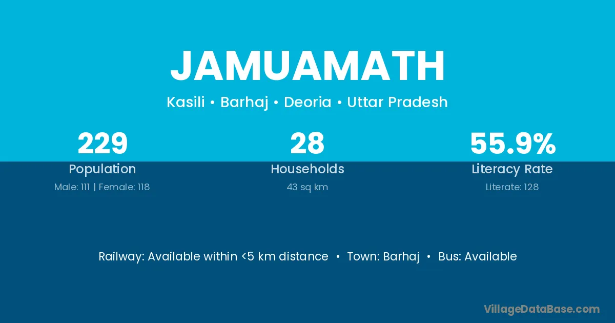 Jamuamath village has a total population of 229 people, of which 111 are males and 118 are females.