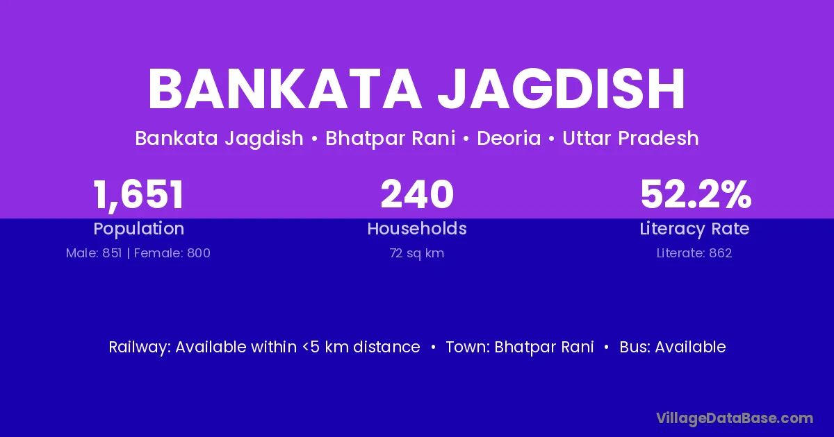 Bankata Jagdish village is located in the Bhatpar Rani Tehsil of the Deoria district in Uttar Pradesh .
