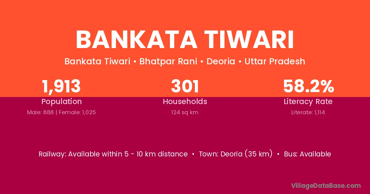 Deoria (35 km) is the nearest town to Bankata Tiwari village for major economic activities and is located approximately 35 km away.