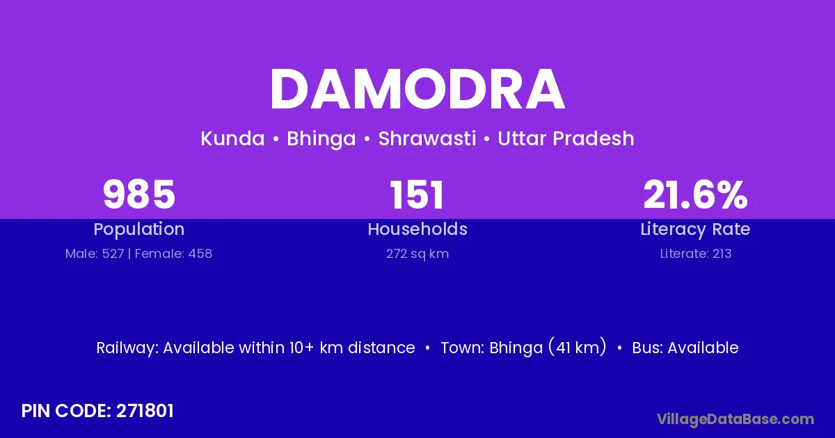 Damodra village has a total population of 245 people, of which 103 are males and 142 are females.