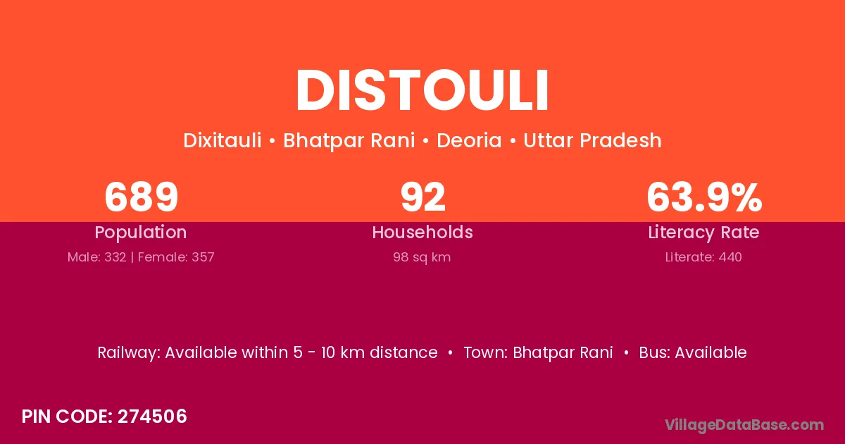 Distouli village is located in the Bhatpar Rani Tehsil of the Deoria district in Uttar Pradesh .