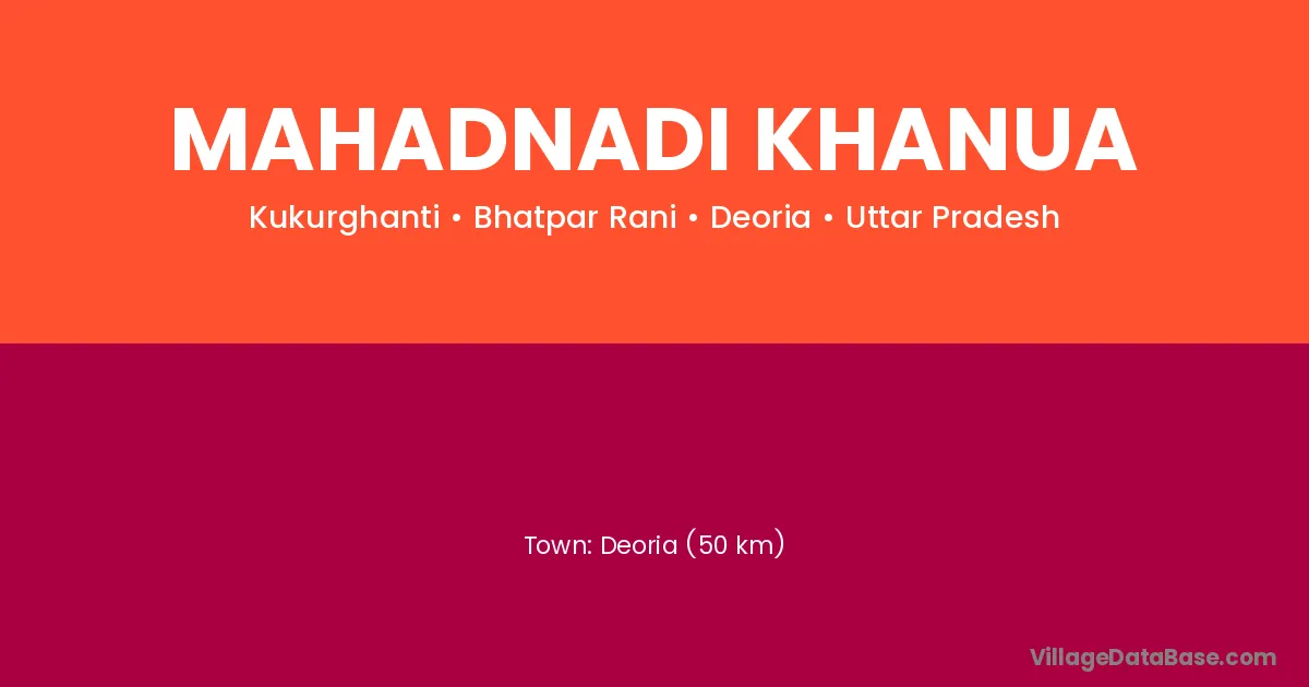 Deoria (50 km) is the nearest town to Mahadnadi Khanua village for major economic activities and is located approximately 50 km away.
