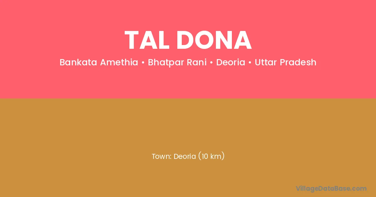 Deoria (10 km) is the nearest town to Tal Dona village for major economic activities and is located approximately 10 km away.
