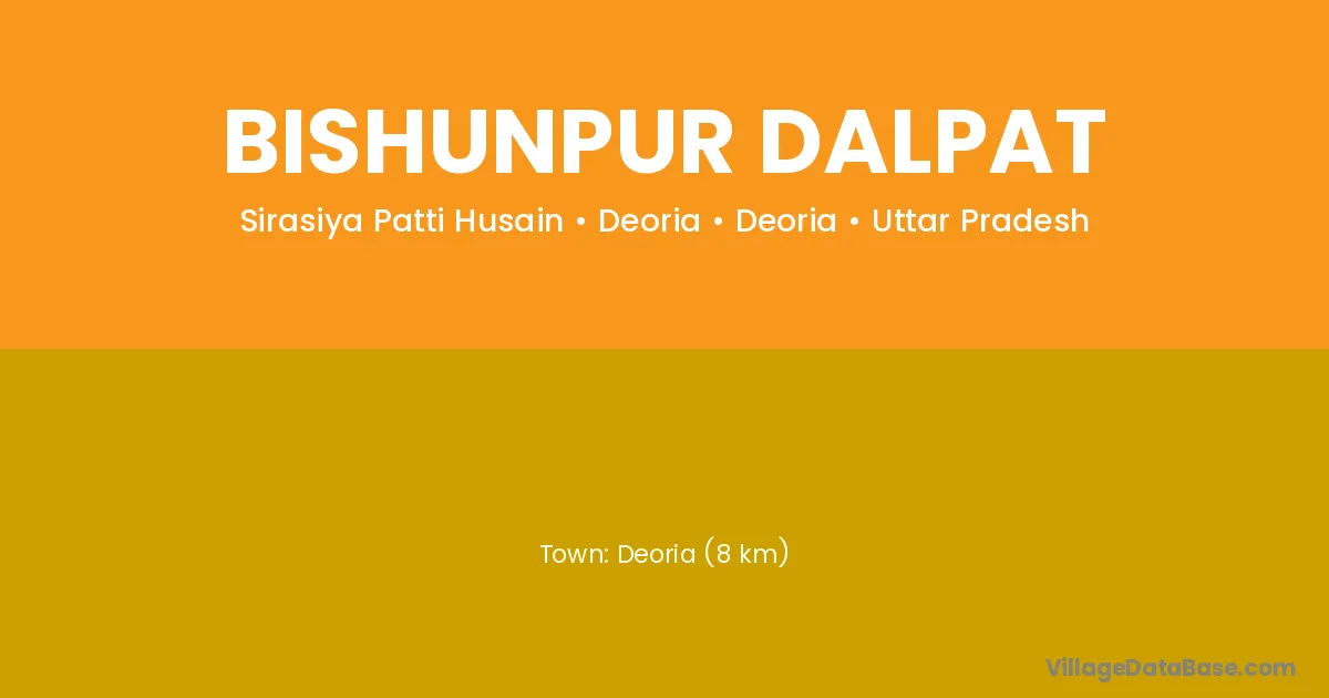 Deoria (8 km) is the nearest town to Bishunpur Dalpat village for major economic activities and is located approximately 8 km away.