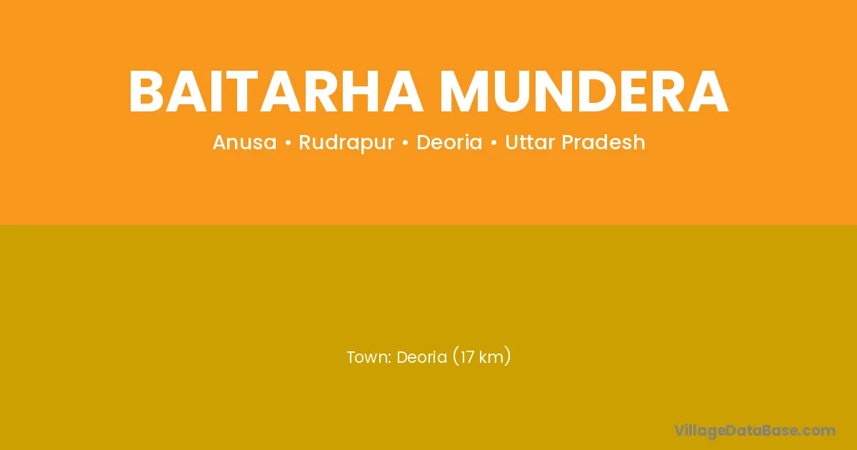 Deoria (17 km) is the nearest town to Baitarha Mundera village for major economic activities and is located approximately 17 km away.