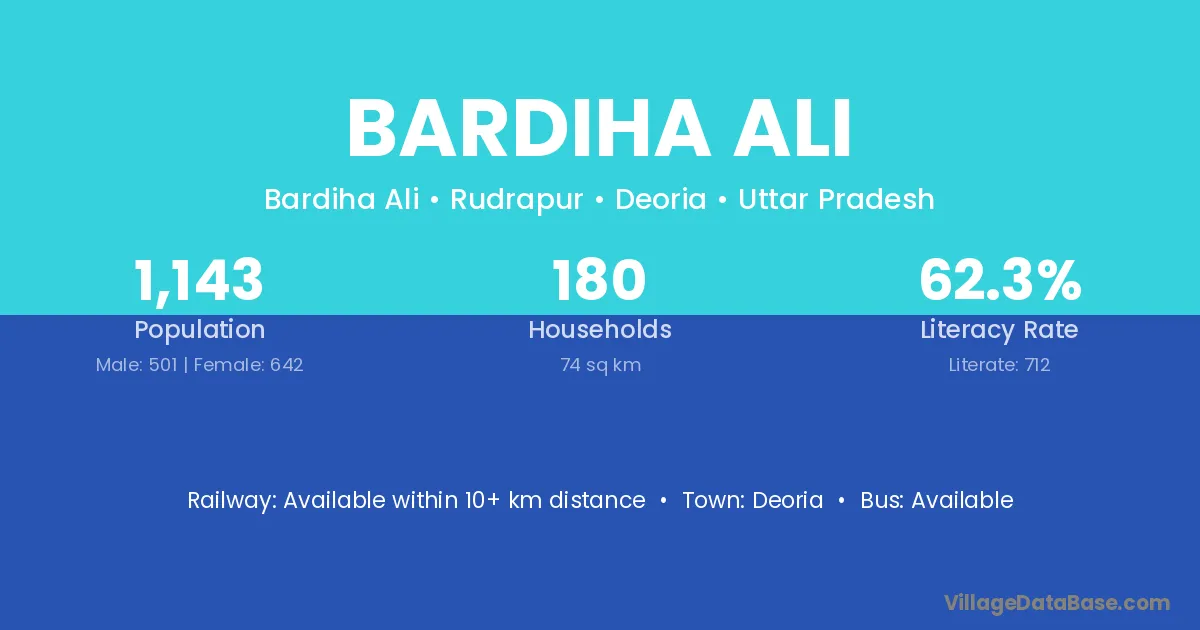 Bardiha Ali village has a total population of 1,143 people, of which 501 are males and 642 are females.