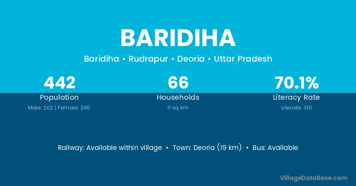 Deoria (19 km) is the nearest town to Baridiha village for major economic activities and is located approximately 19 km away.