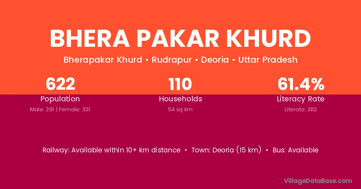 Deoria (15 km) is the nearest town to Bhera Pakar Khurd village for major economic activities and is located approximately 15 km away.