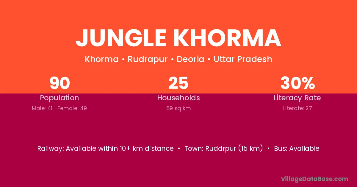 Ruddrpur (15 km) is the nearest town to Jungle Khorma village for major economic activities and is located approximately 15 km away.