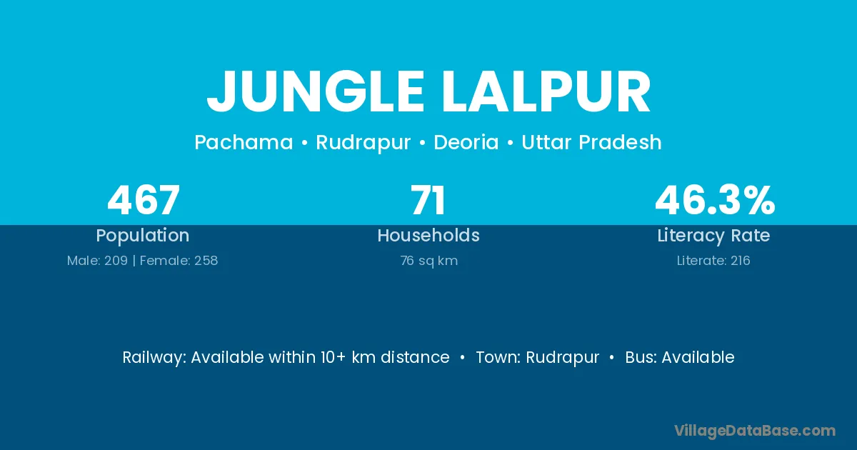 Jungle Lalpur village has a total population of 467 people, of which 209 are males and 258 are females.