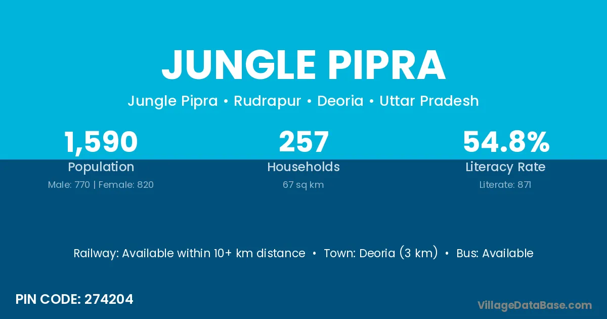 According to Census 2011 information, the village code of Jungle Pipra village is 274204.