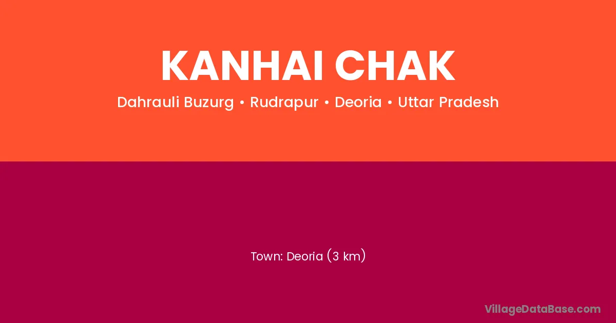 Deoria (3 km) is the nearest town to Kanhai Chak village for major economic activities and is located approximately 3 km away.