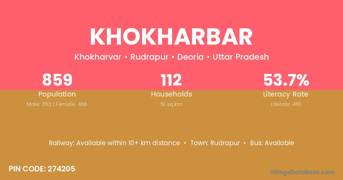 Khokharbar village has a total population of 859 people, of which 393 are males and 466 are females.