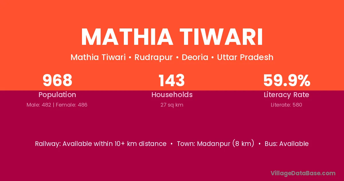 Madanpur (8 km) is the nearest town to Mathia Tiwari village for major economic activities and is located approximately 8 km away.