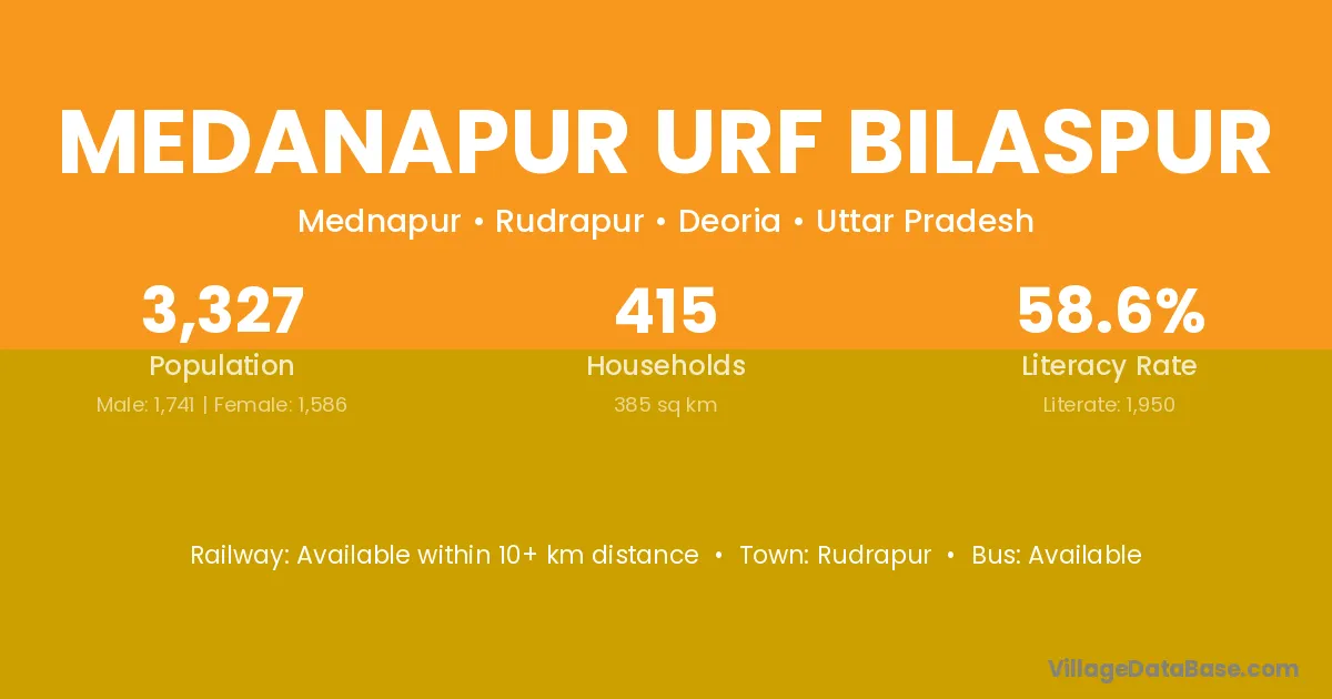 Rudrapur is the nearest town to Medanapur Urf Bilaspur village for major economic activities