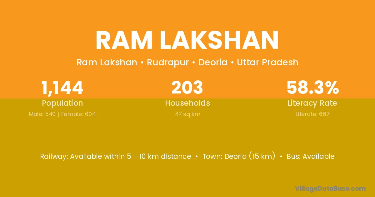 Deoria (15 km) is the nearest town to Ram Lakshan village for major economic activities and is located approximately 15 km away.