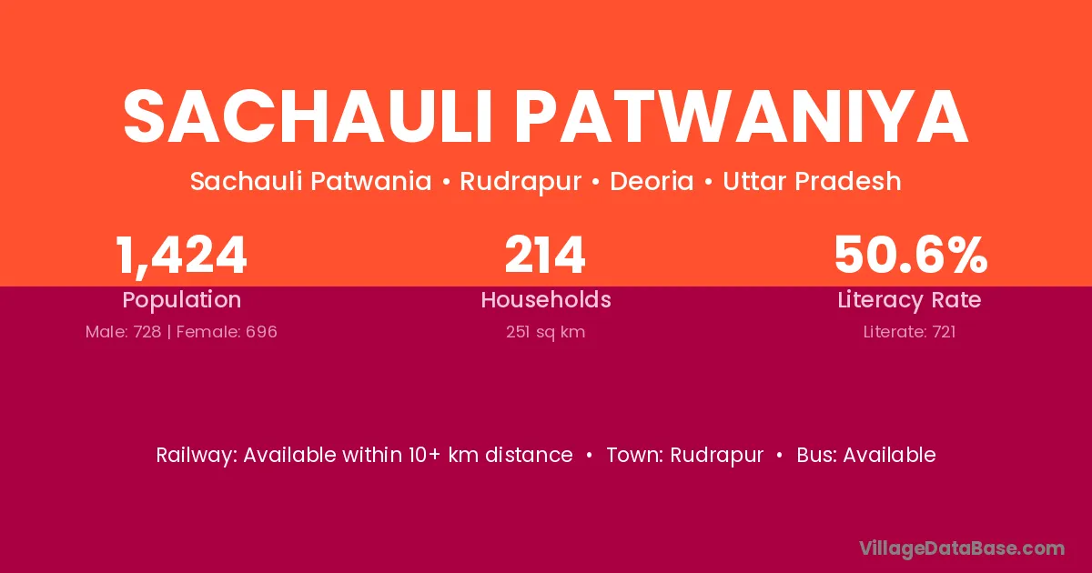 Sachauli Patwaniya village has a total population of 1,424 people, of which 728 are males and 696 are females.