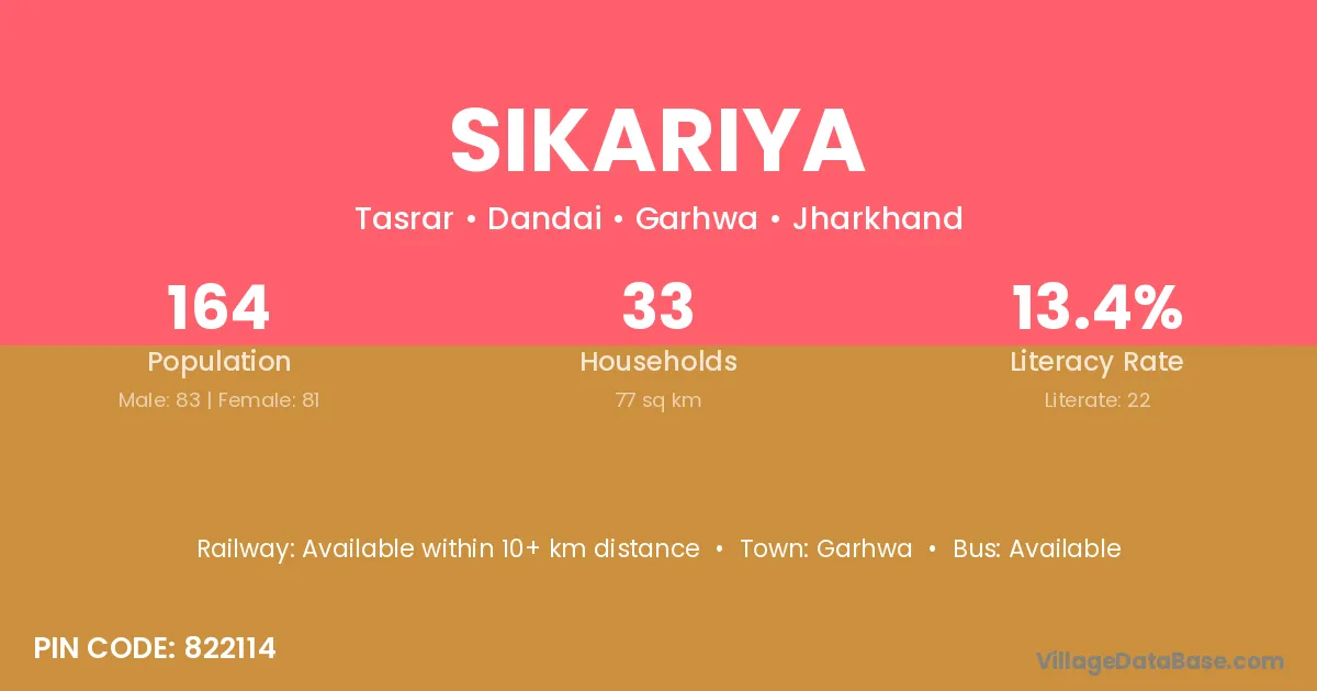 Sikariya village has a total population of 162 people, of which 66 are males and 96 are females.