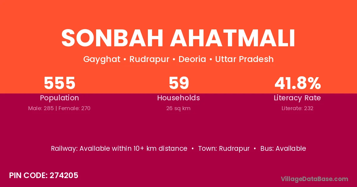 Sonbah Ahatmali village has a total population of 555 people, of which 285 are males and 270 are females.