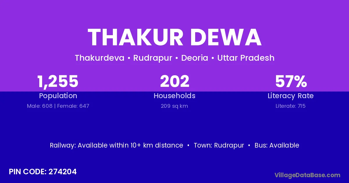 Thakur Dewa village has a total population of 1,255 people, of which 608 are males and 647 are females.