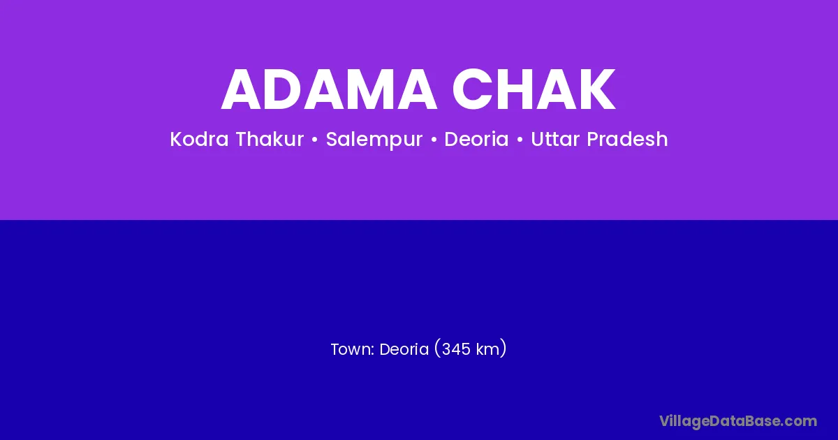 Deoria (345 km) is the nearest town to Adama Chak village for major economic activities and is located approximately 345 km away.