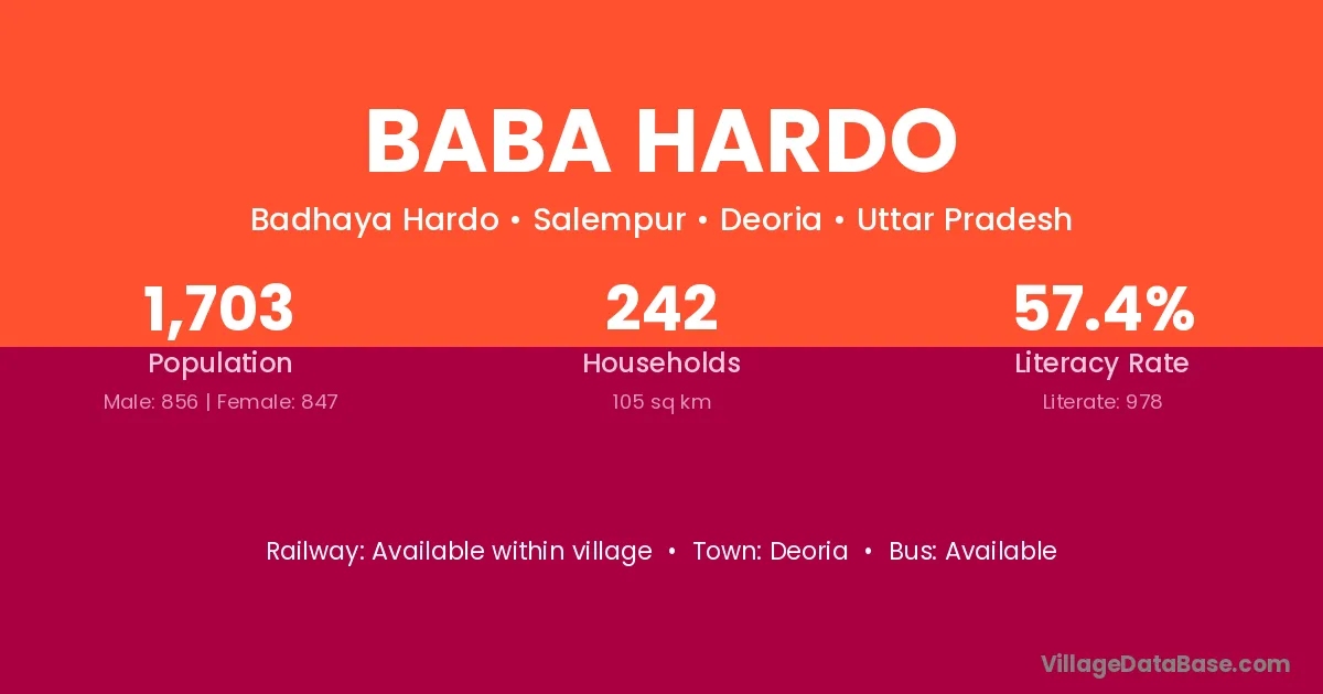 Baba Hardo village has a total population of 1,703 people, of which 856 are males and 847 are females.
