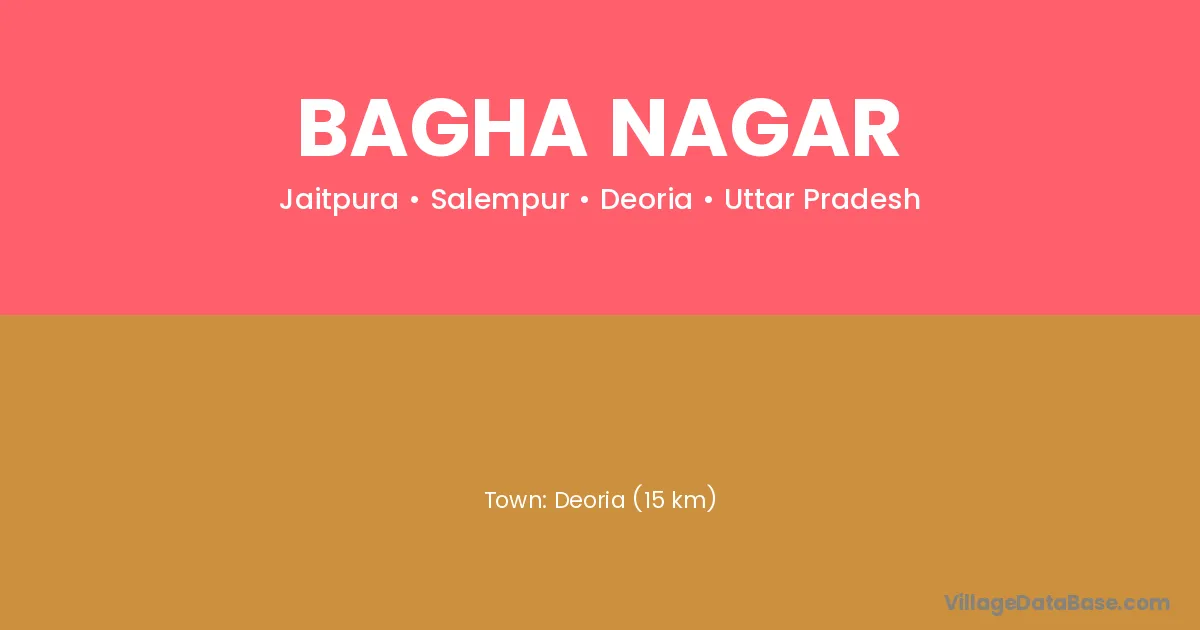 Deoria (15 km) is the nearest town to Bagha Nagar village for major economic activities and is located approximately 15 km away.