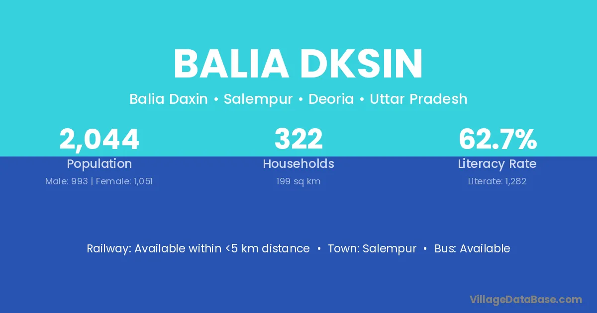 Balia Dksin village has a total population of 2,044 people, of which 993 are males and 1,051 are females.
