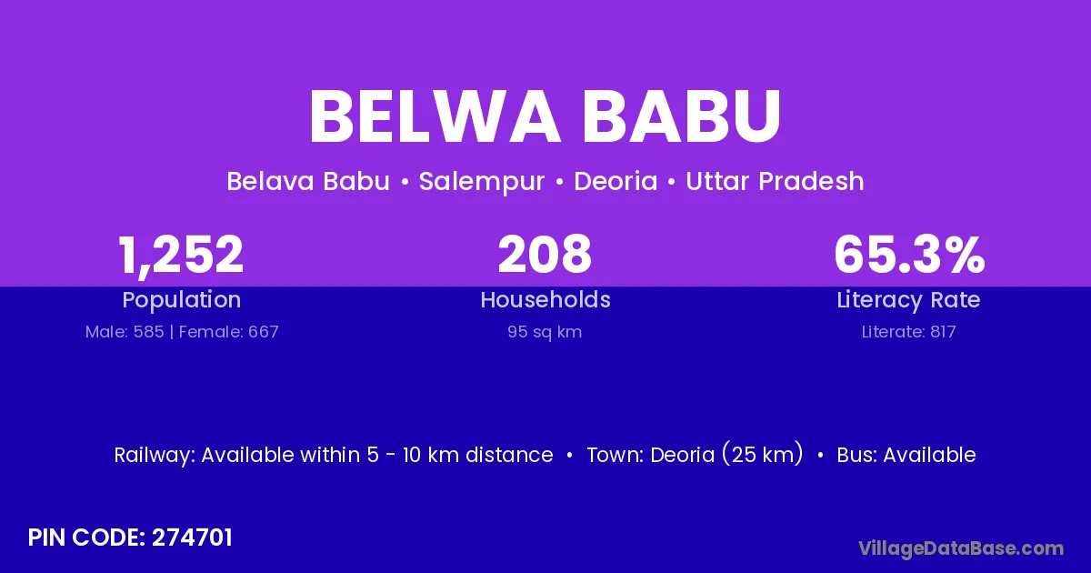 Deoria (25 km) is the nearest town to Belwa Babu village for major economic activities and is located approximately 25 km away.