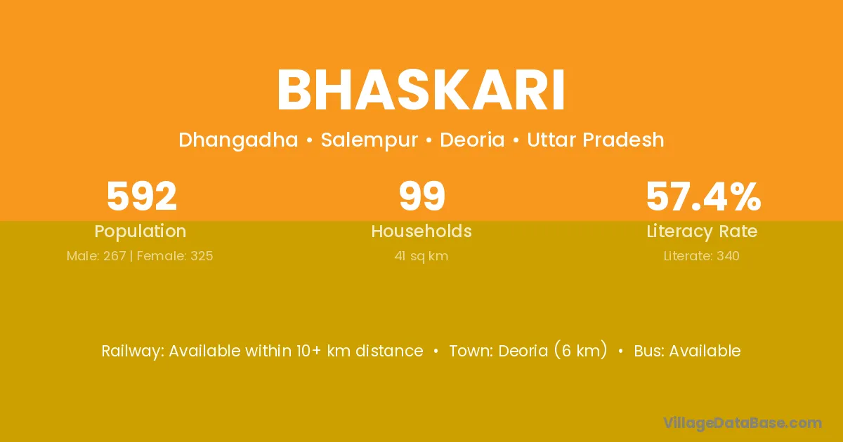 Deoria (6 km) is the nearest town to Bhaskari village for major economic activities and is located approximately 6 km away.