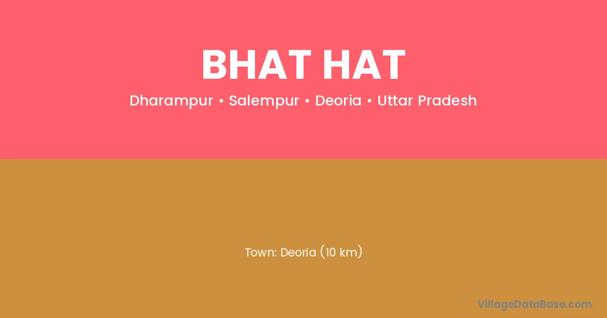Deoria (10 km) is the nearest town to Bhat Hat village for major economic activities and is located approximately 10 km away.