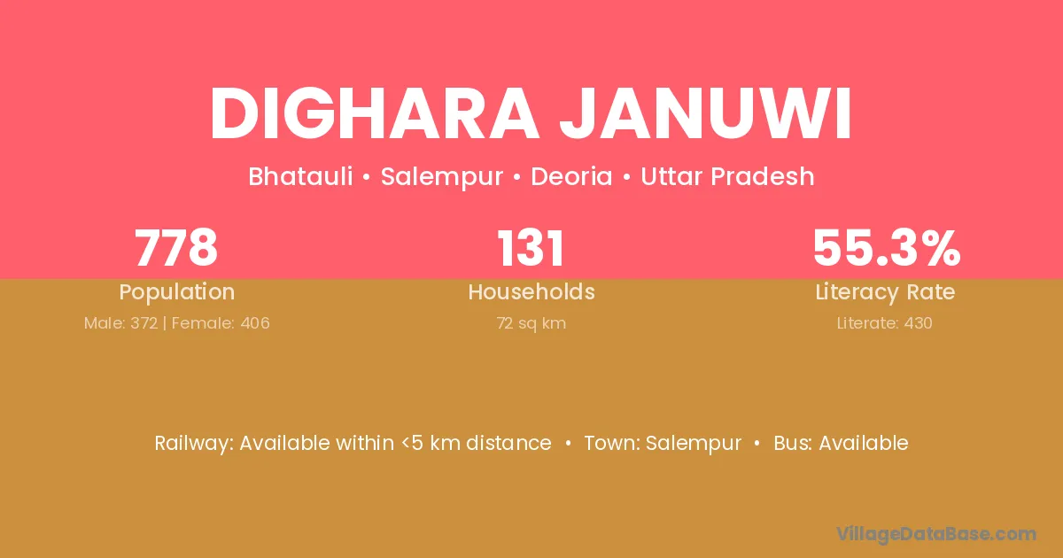 Dighara Januwi village has a total population of 778 people, of which 372 are males and 406 are females.