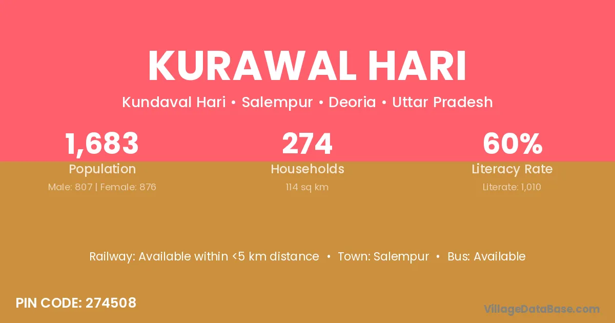 Kurawal Hari village has a total population of 1,683 people, of which 807 are males and 876 are females.