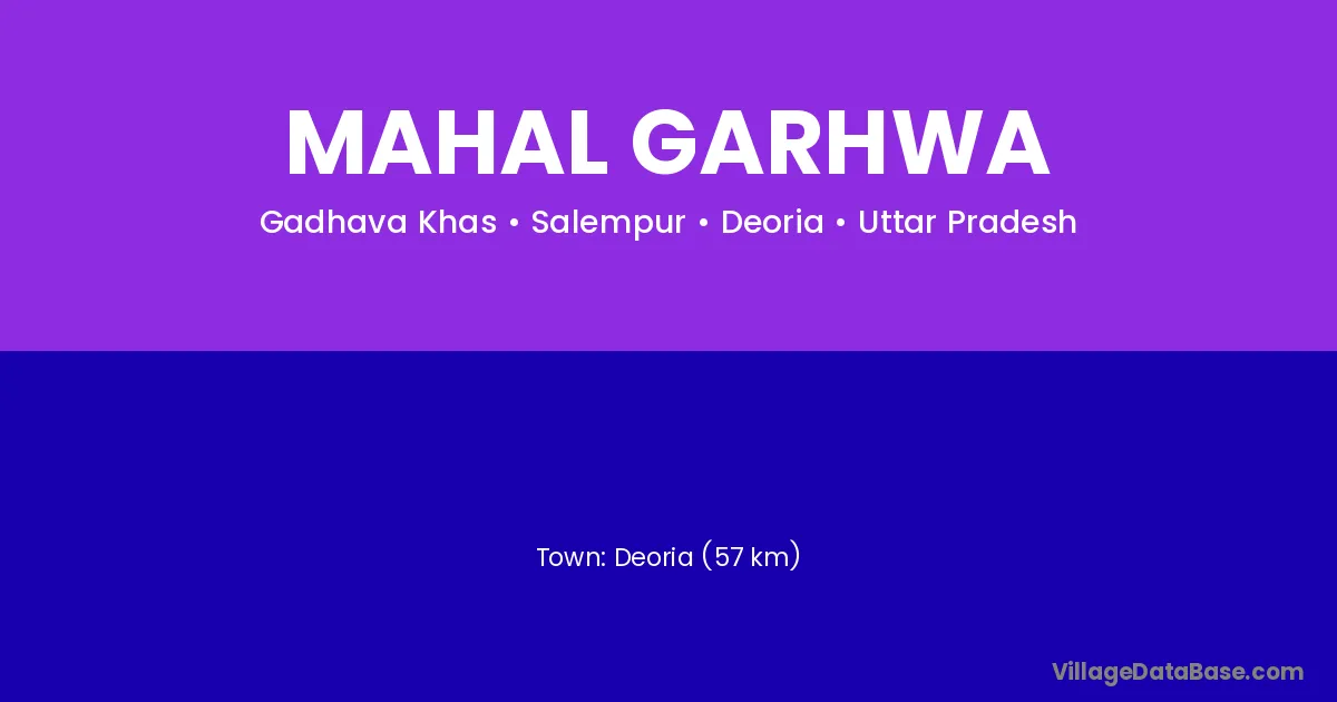 Deoria (57 km) is the nearest town to Mahal Garhwa village for major economic activities and is located approximately 57 km away.