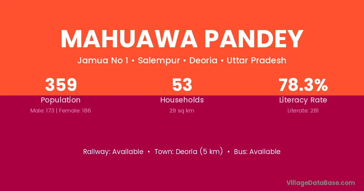 Mahuawa Pandey village has a total population of 359 people, of which 173 are males and 186 are females.