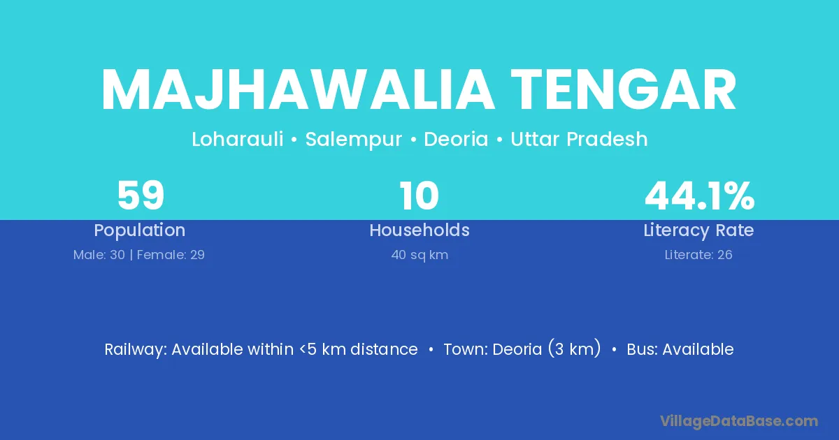 Majhawalia Tengar village has a total population of 59 people, of which 30 are males and 29 are females.