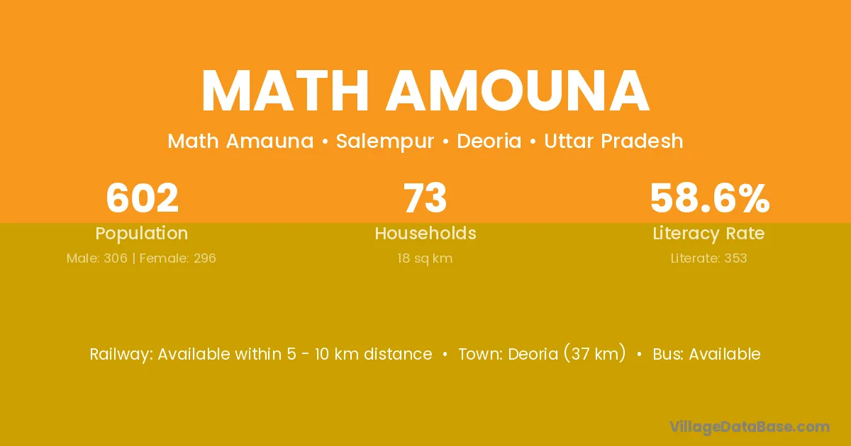 Deoria (37 km) is the nearest town to Math Amouna village for major economic activities and is located approximately 37 km away.