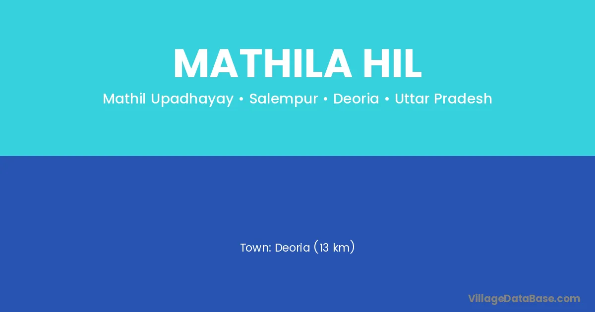 Deoria (13 km) is the nearest town to Mathila Hil village for major economic activities and is located approximately 13 km away.